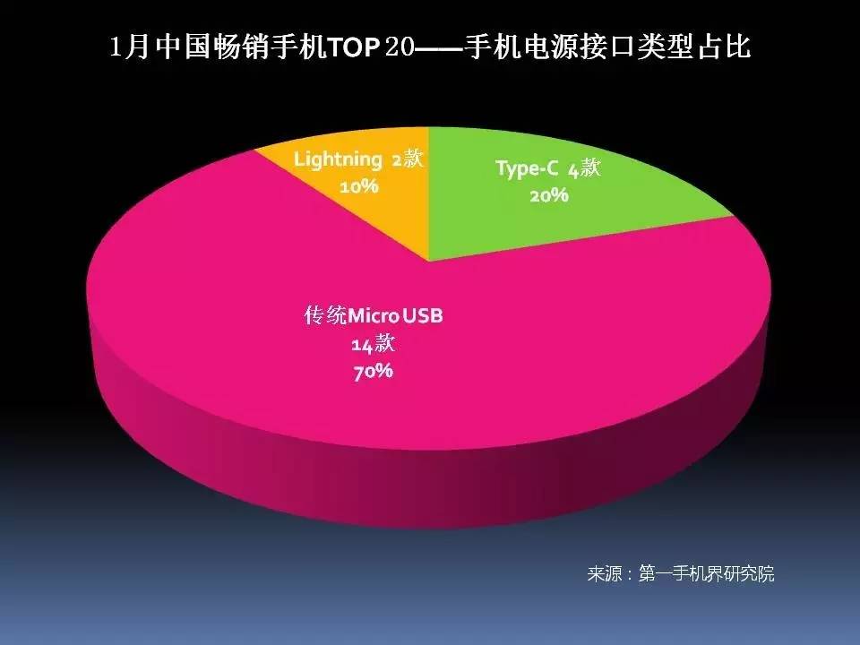 手机电源接口正在悄然变化,Type-c接口在1月中国畅销手机TOP 20占比已达20%。华为的明星机型已经全面采用Type-c接口。