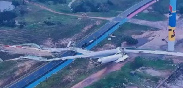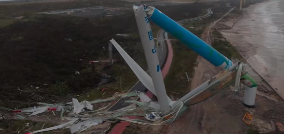 在强力台风之下,海南文昌一风电项目也发生多台风机倒塔事故。该风电场位于文昌玉兰湾附近,从多个网络渠道发布的图片上可以看到,发生事故的风机塔筒被拦腰折断,风机上印有“中国华能”以及“运达风电”的字样。