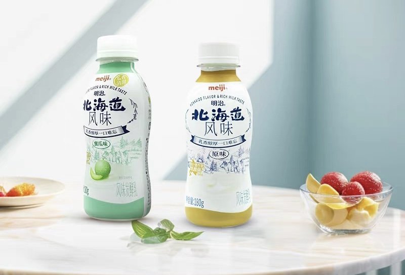 今年9月,明治在中国推出“北海道风味”的酸奶新品,卖点是使用“十胜牛乳乳酸菌TM96”,有原味和蜜瓜两种口味。在6月,明治还推出了凝固型的北海道风味酸奶。