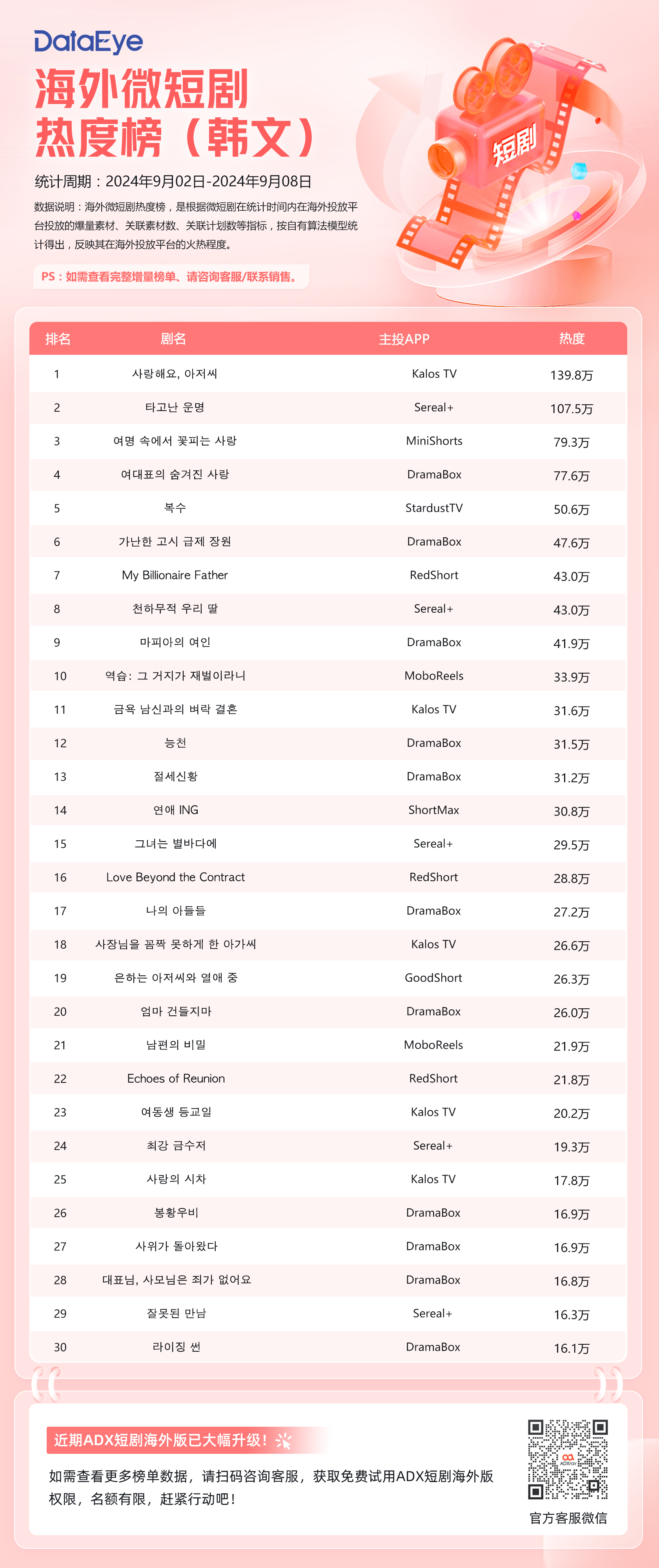 (二)DataEye海外短剧热度韩文榜