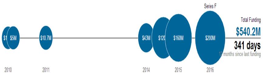Slack 各融资轮次与金额图(数据来源:CB Insights)
