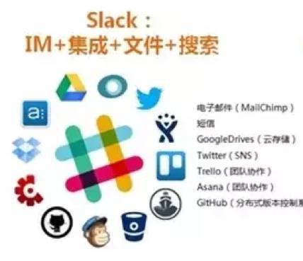 slack它很轻,只是一个SaaS应用,一个智能手机上的App,随时随地都能使用;它又很“重”,将“聊天群组+大规模工具集成+文件整合+统一搜索”等常用办公工具融为一体。整合了电子邮件、短信、Google Drives、Twitter、Trello、Asana、GitHub等超过65种工具和服务,让用户在办公场景中无所不能。