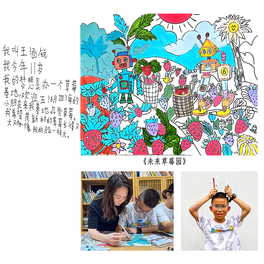 “我的梦想是成为一名农民,拥有一个大果园,我希望田野上都是小飞机来给我们的庄稼送肥料,都是小火车把农作物送到各家各户!”“我希望以后种出来的草莓都和脸一样大!”……近期,宁波茂新村迎来了一群“小画家”,他们在宁波财经学院艺术设计学院师生的指导下,运用AI数字生成技术创作出了许多脑洞大开的画作,赢得不少村民和游客的赞赏。