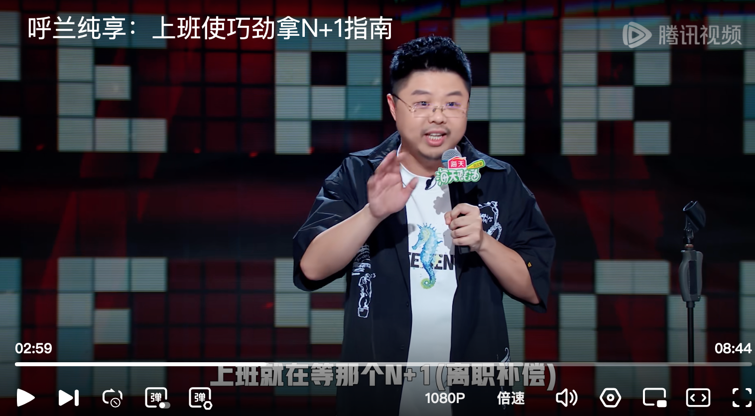 巧合的是,两位演员在台上都提到了裁员、失业的经过。向老板开炮也成为了一种职场笑话的风气,炮火日趋猛烈:老板是吸血鬼、老板会画饼,老板像狗一样乱叫。这可能属于米兰·昆德拉赞成的幽默的意义之一,对看起来完美无缺的世界发笑,可以让人们从太多毋庸置疑的意义中解脱。
