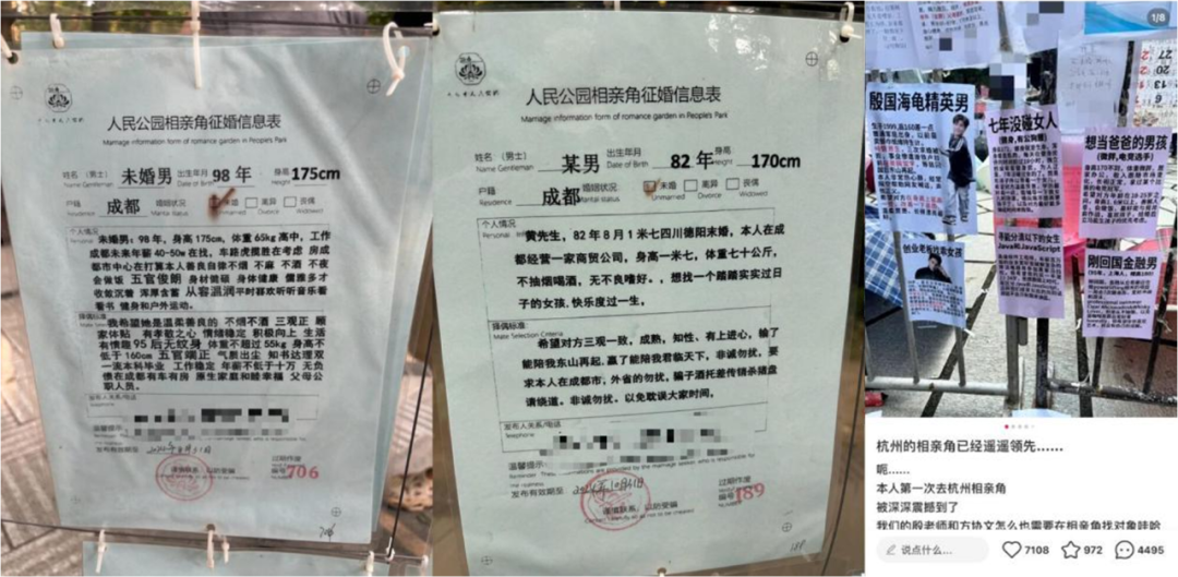 不知什么时候开始,相亲角成了年轻人的网红打卡地。无论是单身亦或是已经有对象的年轻男女,都会怀揣着猎奇的心理、批判的心态,专注地研究着那些粉粉蓝蓝的简历。