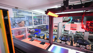 白露时节,安徽赛拉弗能源有限公司智能制造场景令人目不暇接:一张张高效太阳能光伏板,快速在生产线上流转,焊接、叠层、层压等流程由工业机器人有条不紊地完成。