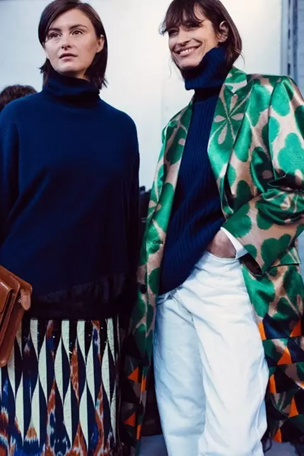 如果说之前Dries Van Noten让这类容易显得老气的墙纸图案变得充满度假风情,这一次的演绎则让它更加年轻摩登:鲜明印花与不同的色块放置在一起,搭配高领毛衣和牛仔裤以及未来感的白色短靴。