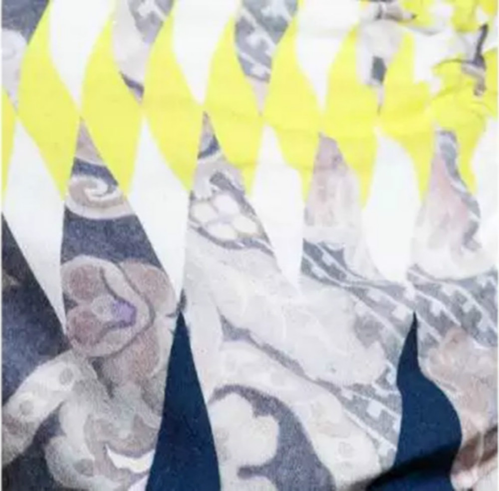 Dries Van Noten特别擅于将民族元素加入自己的时装系列中,他的设计也总能显现出一些含蓄迷人的异域风情。新系列中也致敬了这一元素,将明黄色几何图形覆盖在古老的植物佩斯里图案上,重新打造了一款独特印花。