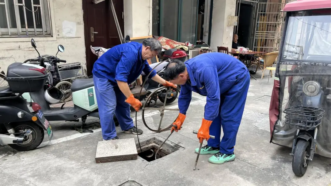 为有效应对台风天带来的暴雨,几天前,杨浦区吴家浜小区便开始疏通300多个窨井以及连接窨井的下水道,确保窨井水位正常、下水道通畅。据物业维修人员介绍,小区的下水道与大连路的下水道相通,只要大连路不积水,小区也就不会有积水情况。