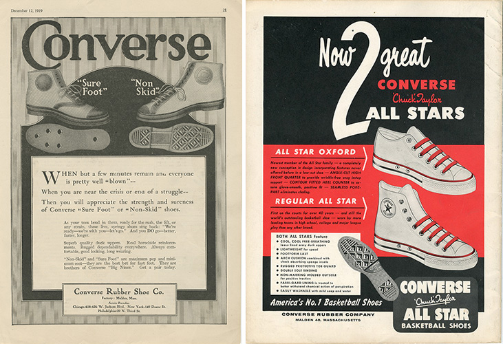 匡威在1921年找来了一堆篮球运动员和教练做为球鞋宣传大使,Chuck Taylor就是其中一个——如今他的名字几乎与这双帆布鞋划上了等号。“他不是迈克尔·乔丹一类的人物,但他给品牌增添了可靠性”,多伦多一家球鞋博物馆的馆长Elizabeth Semmelhack说,“就像是一个符号,印证了这双鞋的运动潜质。”