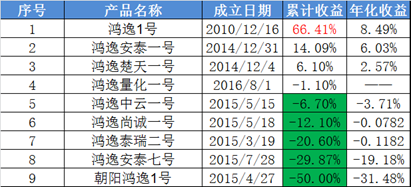 据私募排排网数据显示,上海鸿逸管理的9个基金产品,仅3个产品获得正收益,其余均是负收益。其中朝阳鸿逸1号净值跌去一半,与其明星产品鸿逸1号66.41%的累计收益率形成鲜明的反差,这两个产品的净值表现差高达116.41%。