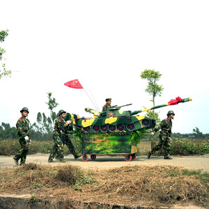 穿过田野的坦克。这里自古以来就有爱军习兵、尚武强身的传统,闹元宵队伍中的坦克、军舰等都是村民自己的创意。