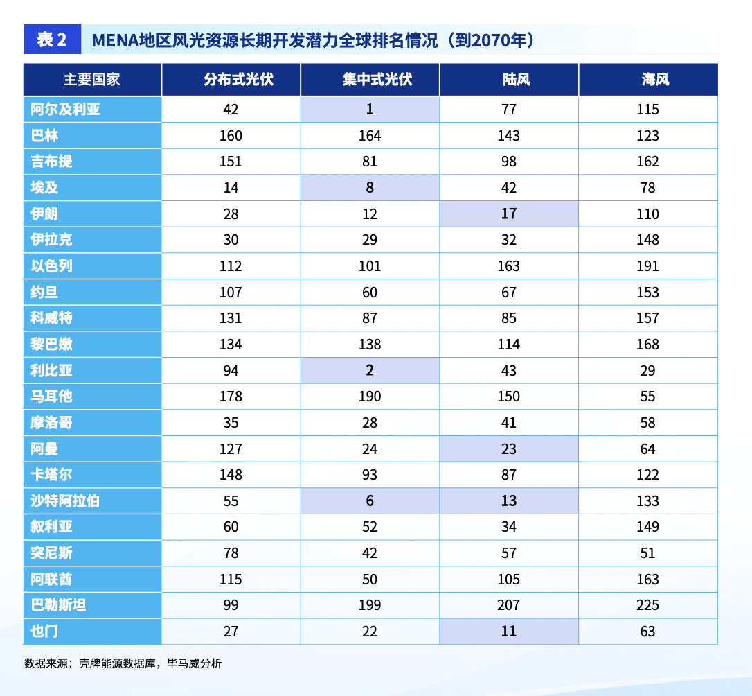 日前,毕马威中国在深圳国际数字能源展上发布《新能源企业“出海”系列报告》。其中,《新能源企业“出海”系列之驶向中东》报告的数据显示,中东和北非地区具有风光资源储备丰富的先天优势。太阳能方面,该地区接收了地球表面太阳能总量的22%-26%,每平方公里的太阳能潜力相当于每年100-200万桶石油产生的能量,可满足全球至少50%的电力需求。风能方面,该地区四分之三区域的平均风速超过了公用规模风电场的最低风速阈值,摩洛哥、埃及和突尼斯等国的风速均位居世界前列。