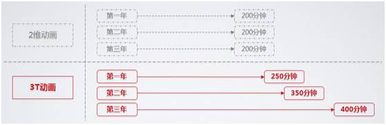 通过使用3T技术,传统2D动画产量、效率以及素材复用率得到大幅度提高,剧集的月更、周更、日更具备有效保障。