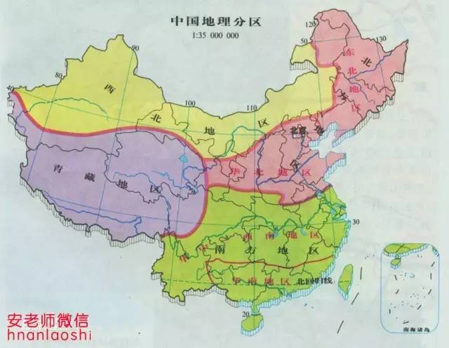 中国被分为四大块,分别为西北地区,北方地区,青藏地区,南方地区