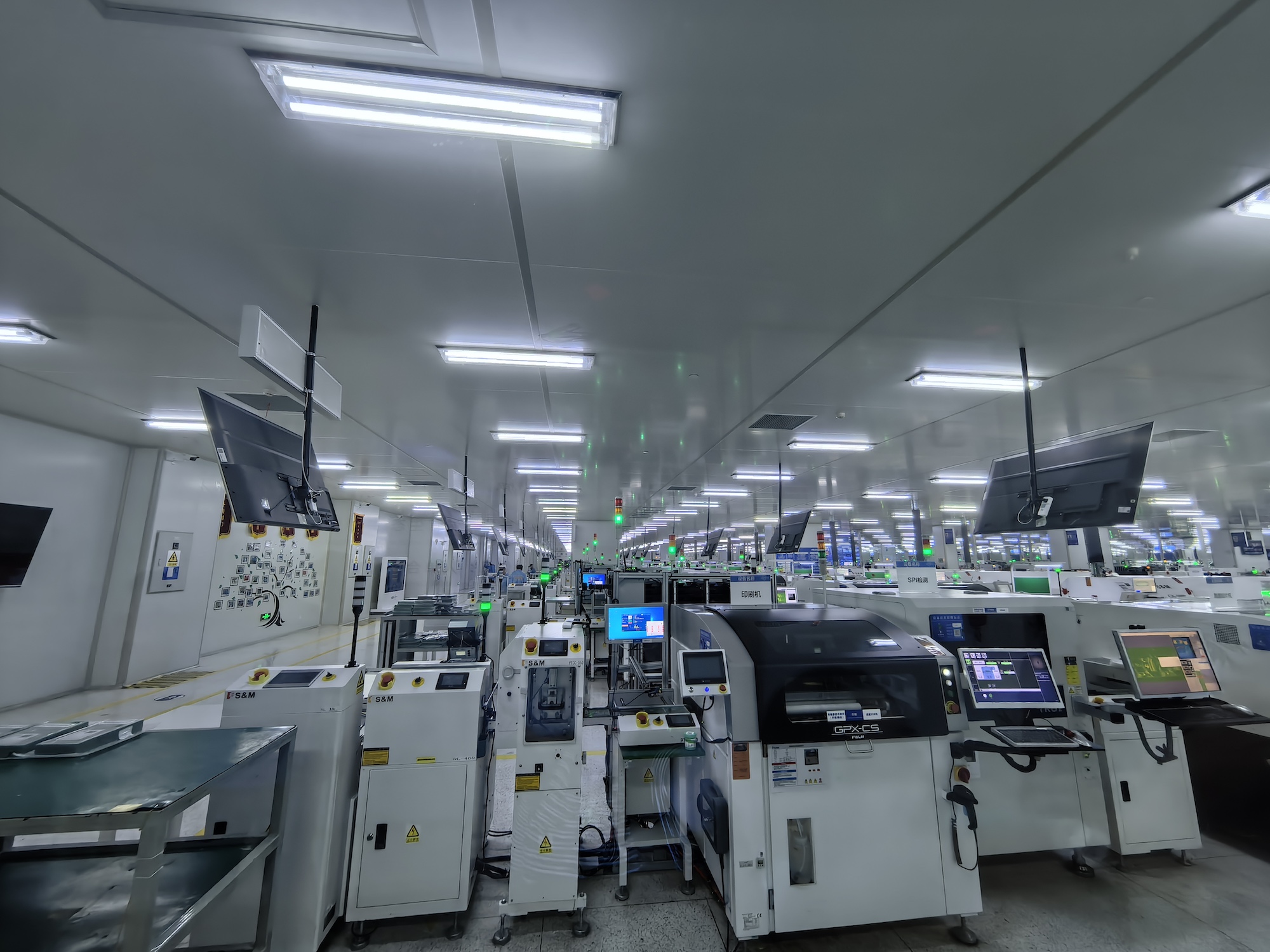 半成品完成后,被装入工装车,由AGV(自动导向)小车拉往暂存区,第一道工序至此结束。在该工厂,大部分工序均实现无人化,插件工序仍然需要人工作业。