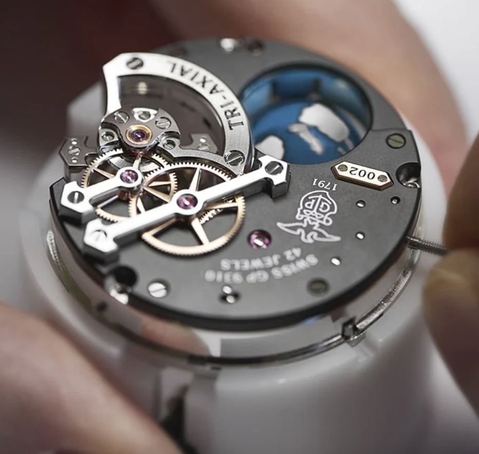 由140个零件组成的三轴陀飞轮,其内框架采用1880年以来GP芝柏表标志性的七弦琴造型,三轴联动旋转,联结古往今来的四时天地,周而复始轮转于腕间熠熠苍穹。