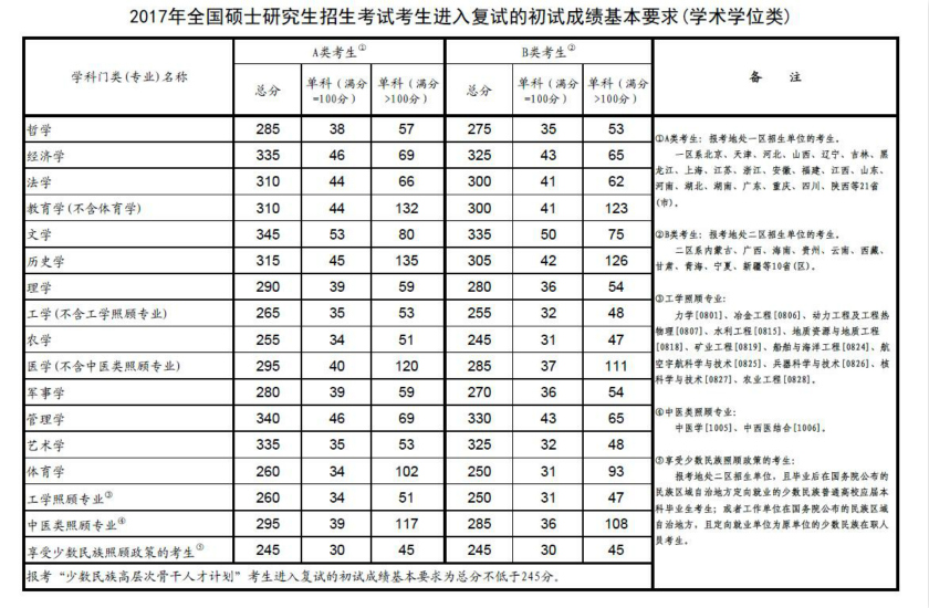 今日,教育部公布《2017年全国硕士研究生招生考试考生进入复试的初试成绩基本要求》,2017年硕士研究生招生复试录取工作全面展开。