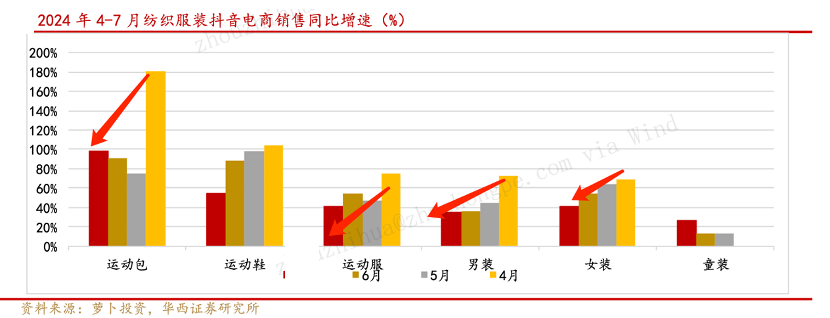 我们再看华西证券整理的平台纺织服装业销售同比增长情况,主要品类在过去几个月同比增长都呈变缓的态势,这些都说明抖音在告别高速增长阶段,进入发展的新周期。