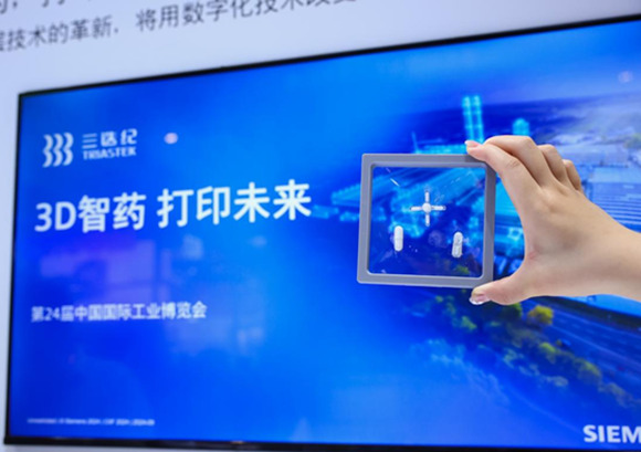此次工博会上最迷你的产品,由南京三迭纪医药科技有限公司(下称三迭纪)带来,它是一款3D打印药片。