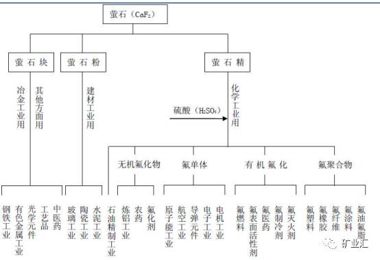 用于炼钢、铸造的冶金级萤石用量大,约占总消费量的40%;用于氟化工的酸级萤石约占36%;用于水泥、玻璃和陶瓷行业的陶瓷级萤石约占21%;其他行业约占3%。