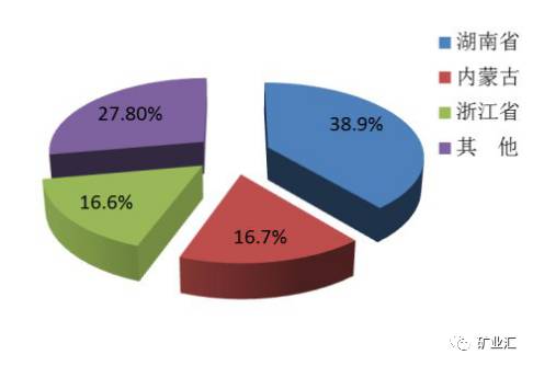 我国萤石储量从地理分布上看,中国萤石分布于全国25个省(区),主要集中在内蒙古、浙江、福建、江西、湖南、广东、广西、云南等八省区,这些省区的萤石矿床(点)数占全国萤石总矿床(点)数的70%,而储量占全国萤石总储量的90%;特别是浙江、湖南、内蒙古三省区,占全国萤石储量绝大部分,占全国萤石保有储量的72%。