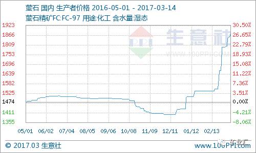 近年来,随着冶金、建材氟化工的高速发展,尤其是氟精细化工的高速发展,下游需求增速远远超过了萤石供应增速,加之在全球萤石贸易中占重要地位的中国开始实行限制出口政策,导致全球萤石供应紧张。