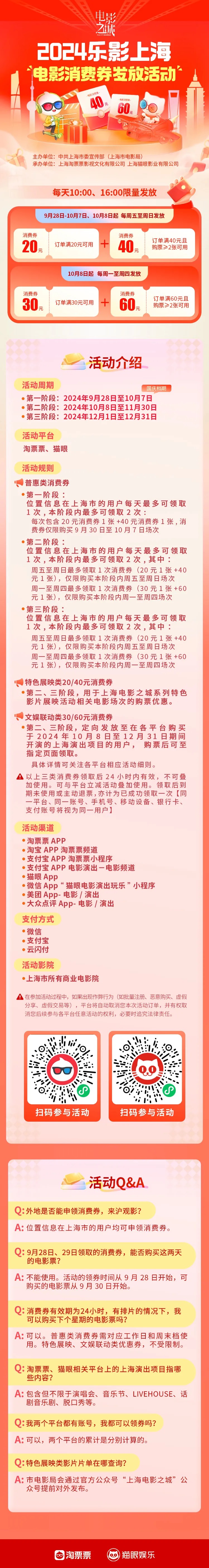 此次,上海计划在国庆期间发放更多电影消费券,以营造节日氛围,吸引更多观众走进影院,为电影市场注入新的活力。