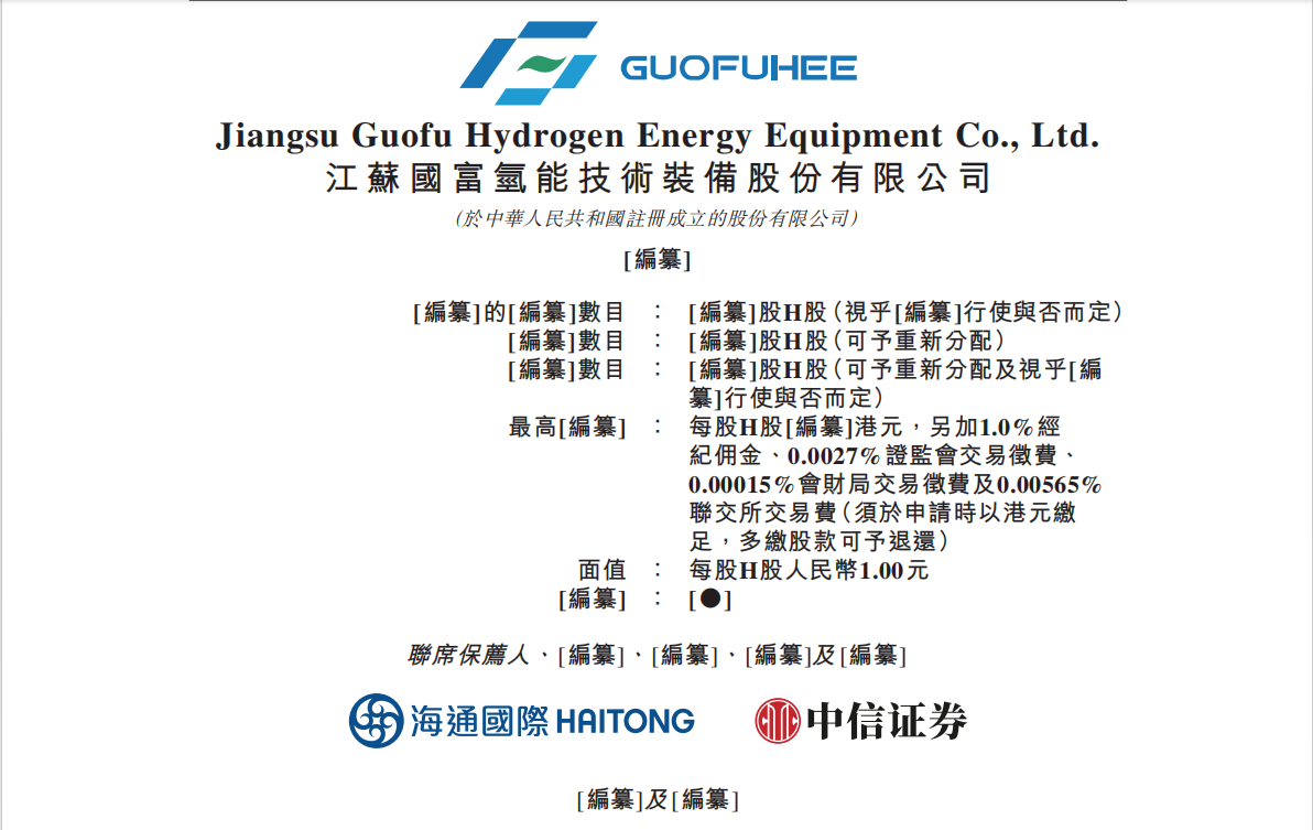 据香港交易所消息,江苏国富氢能技术装备股份有限公司(下称国富氢能)于9月20日正式向港交所递交主板上市申请,海通国际、中信证券为其联席保荐人。
