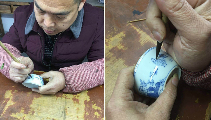 他们从古法练泥、拉坯成型、青料彩绘、古法烧窑等一一进行全面的研究与传承,利用景德镇出土的各式残破瓷片作反复对比,直至达到最大程度的还原工艺要求为止。