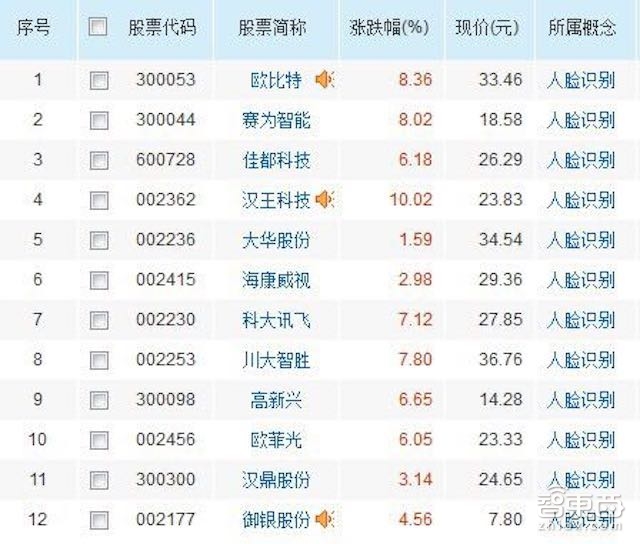 以下为股票软件筛选自认定的人脸识别”概念股: