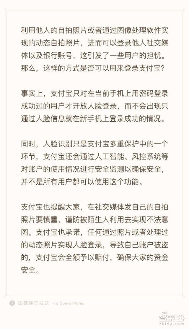 支付宝强调人脸识别只是风控环节之一,相当于说这个环节被攻破了,还有其他环节作为保护,有间接承认这部分安全存在漏洞的嫌疑。