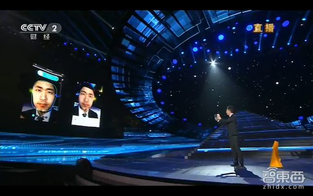 随后的近90分钟里,晚会主要针对农林牧渔等更贴近民生的日常话题……然后重点来了。主持人先是谈到在微博、微信等社交平台(感觉腾讯公关心跳停一秒),大伙都喜欢发自拍。随后,主持人演示经过技术处理为一张普通照片加入眨眼、动嘴等动态效果,并选取一张现场小伙照片与自己的实时影像进行合成。