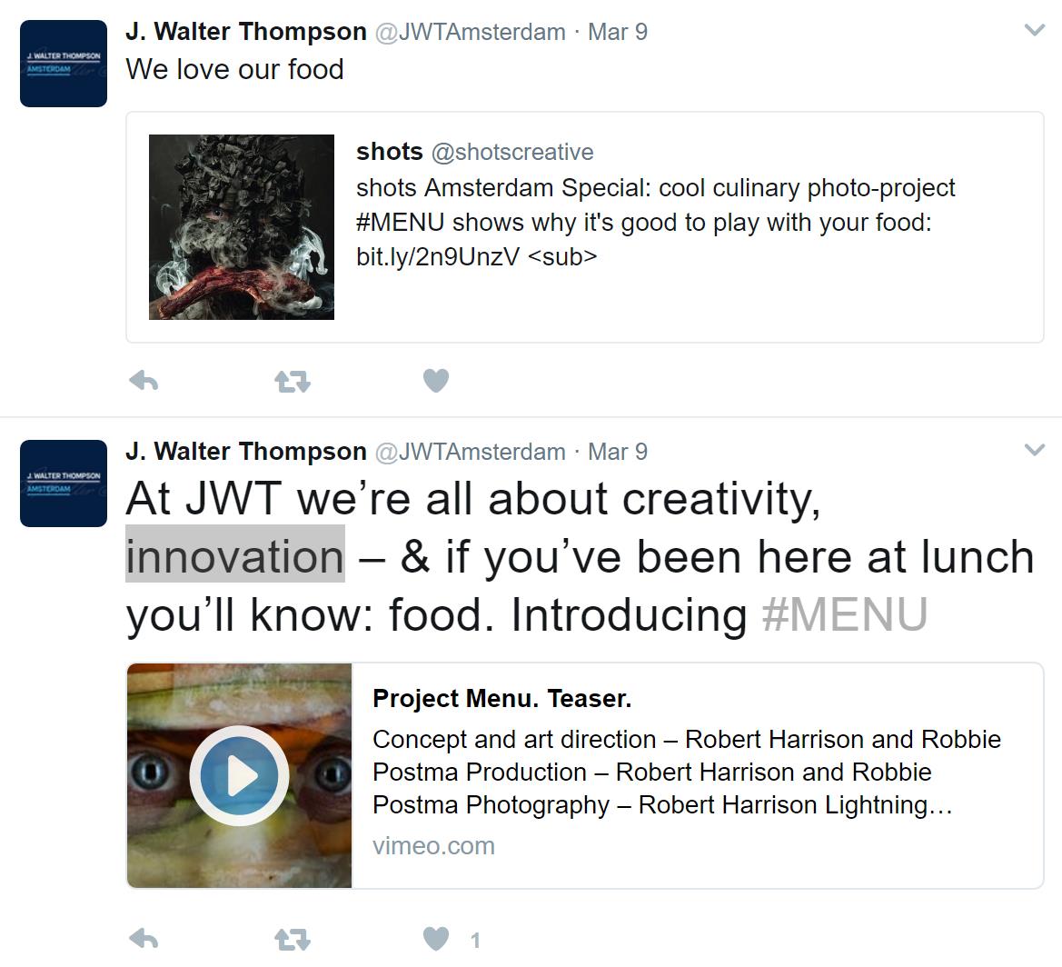 在Twitter上,JWT阿姆斯特丹推介这组作品时,语气中也是不无自豪。