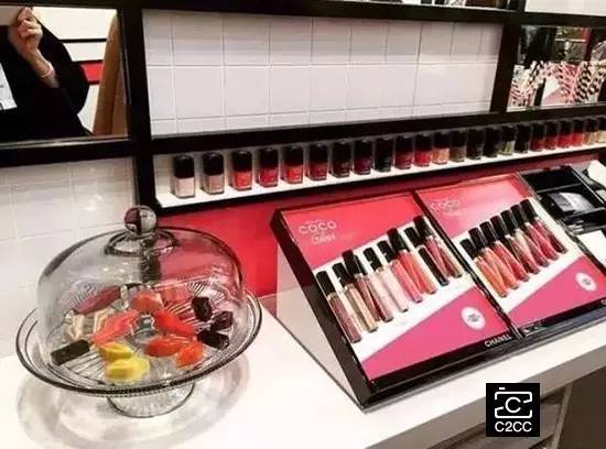 为什么?吧台式的试妆区的货架上摆满了各式彩妆产品,供进店消费者随便试用。而这其中,Chanel春季新品唇釉系列Rouge Coco Gloss最能吸引年轻人的目光。