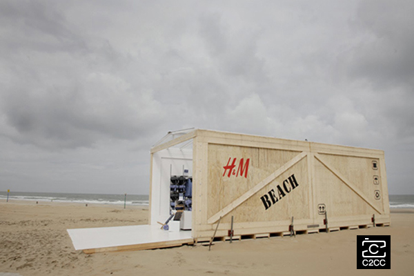 2011年,H&M的一家快闪店出现在荷兰海牙的席凡宁根海滩。这是一家被称为“被浪花冲上海岸的快闪店”,店铺的合作者是水援助组织。水援助组织是一家国际非盈利组织,致力于通过改善供水渠道以及卫生系统来提升人们的生活质量。这家快闪店共开了两天。