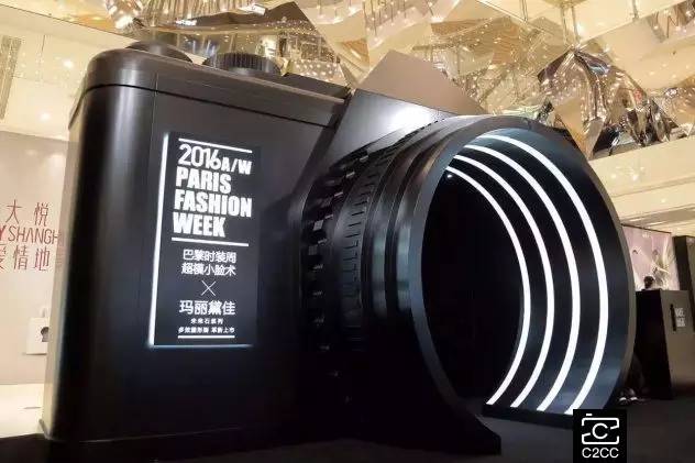 在参与感上,快闪店算是把“玩”的精神发挥到了一定程度。Chanel Coco Café专门设置了拍照区,除了发放SNS上传步骤卡片,店员还不断提醒客人可以上传到社交网络。在大悦城的玛丽黛佳“快闪店”,以一个巨型的相机为设计原型,很自然地会暗示消费者停下脚步一起玩时尚。