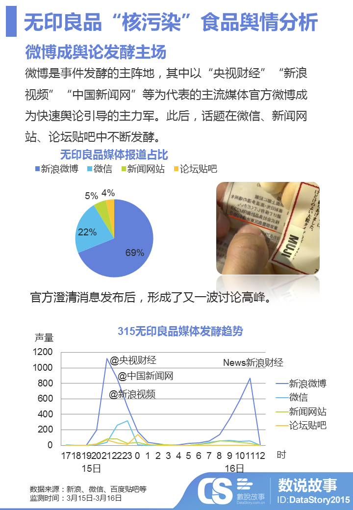 不管是在无印良品事件还是百度百科事件中,在电视直播同时,微博成为了曝光信息快速传播的源头,并在众多主流媒体引导下快速构成巨大的舆论场;