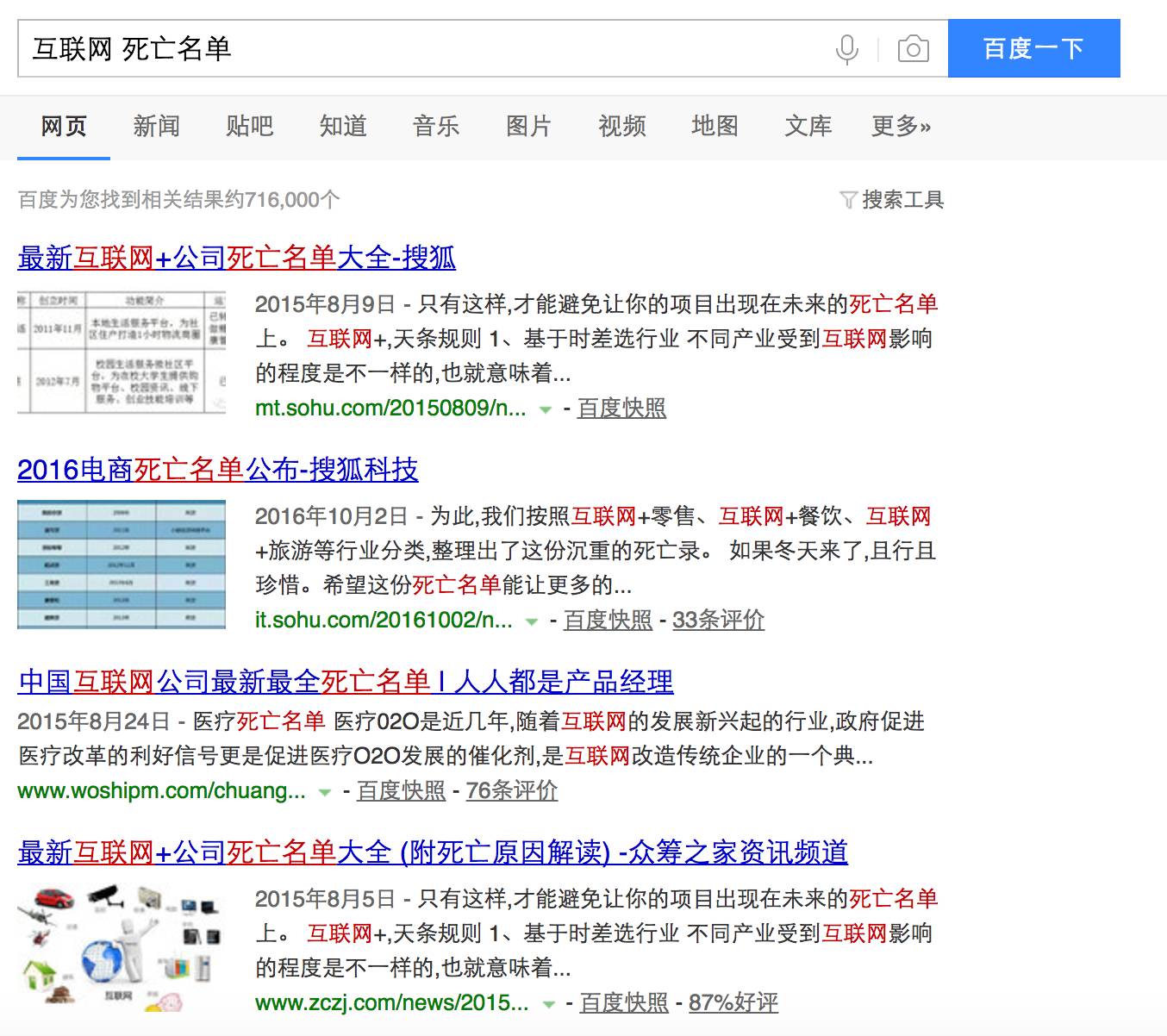 甚至这种寒冬论至今都未能消弭,依然像是悬挂在互联网创业公司头顶的一把达摩利斯之剑,各行各业的死亡名单被更多的媒体整理出来。