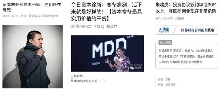 时间从2015年跨度到2017年,寒冬的气氛始终笼罩,甚至创投圈大佬也纷纷支招如何过寒冬。