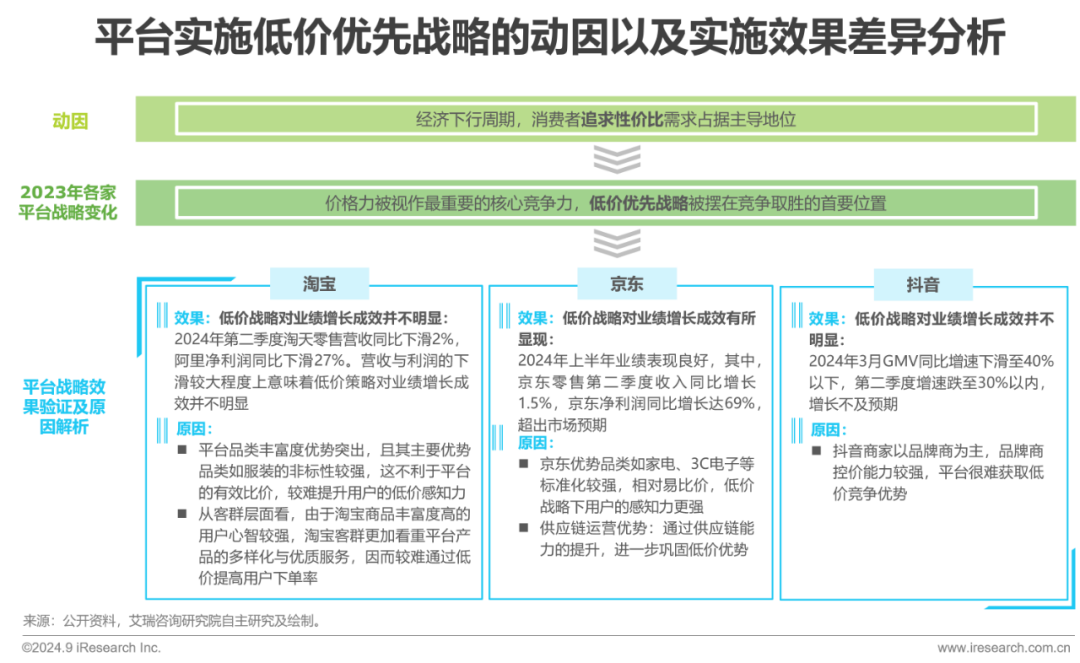 追求性价比的消费需求占据主导地位的大背景下,流量分配上如何加大低价导向的力度成为各家平台的核心角力点