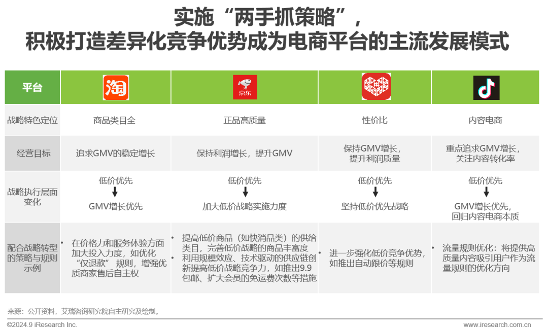 2024年,电商平台战略调整的核心特征可归纳为“两手抓”: