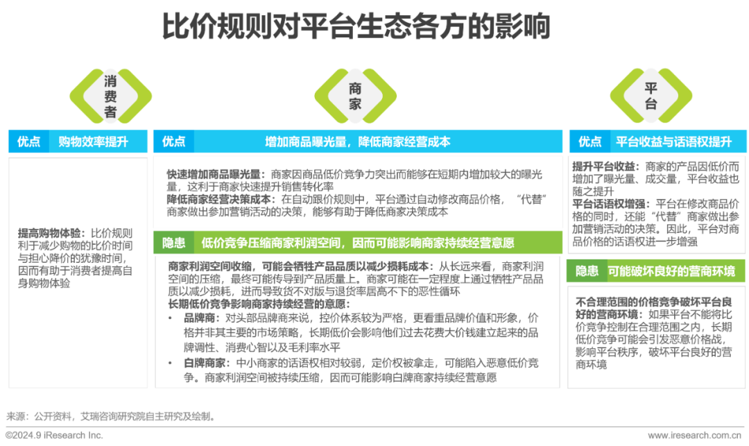 比价规则利于快速识别高效率的商家及其商品,但平台应保障商家合理利润空间,进而增强商家持续经营以及差异化创新的意愿,以防止平台商家陷入低质量发展的路径依赖困境。这利于形成商家价值链进阶、消费者获得感持续增强的良性循环。