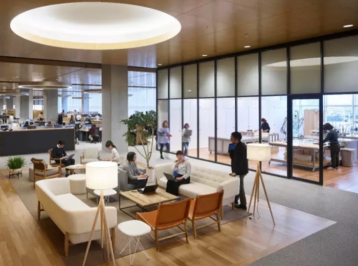 在六楼的办公区,商品开发阶段的速率也在提升。迅销请来Allied Works建筑事务所为新总部设计了一个不分部门、只按照项目组进行分区的大开间办公室。整个办公室共有6个区块。每个区块内,商品企划、设计、制作和销售的员工聚在一起,沟通效率提升明显。