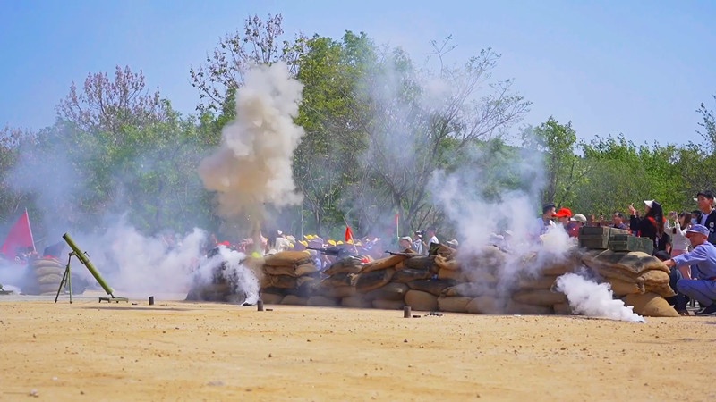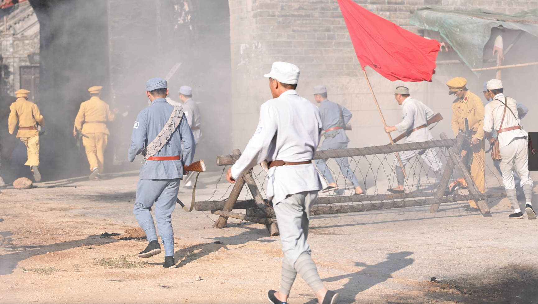 炮火过后,冲锋号声响起,但听“团长”一声令下,“战士们”跃出掩体,穿过硝烟封锁,英勇前进,向着“县城”发起总攻……