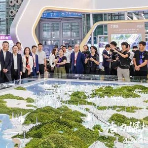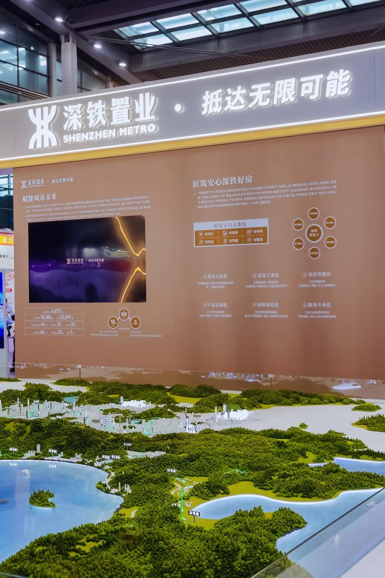 当天上午,深铁置业设于8号馆正中央的展位门庭若市,面积近300平方米,十分惹人瞩目。展位主视觉提炼地铁元素,正门造型犹如两列相拥环抱的列车,一幅巨型深圳城市轨道交通沙盘立在中心,模拟驾驶舱则设在一则,象征以轨相连建好房、创造美好生活、激活城市无限可能的企业初心。其中,深圳城市轨道交通沙盘模型通过立体、生动的方式展示深铁置业TOD项目布局,突显其为城市带来的空间优化和活力再生。