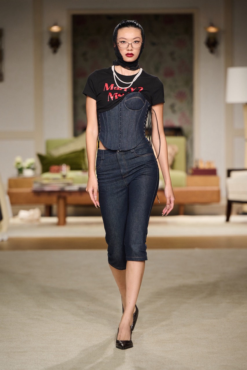MARKGONG以《欲望都市》中的Charlotte York为灵感,呈现了一场颇具戏剧性的2025春夏系列秀。设计师Mark Gong巧妙地将这位"完美主妇"形象解构重塑,探讨了现代女性在婚姻与自我之间的矛盾与平衡。