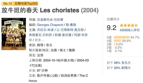 由克里斯托夫·巴拉蒂执导,杰拉尔·朱诺、让-巴蒂斯特·莫尼耶等主演的[放牛班的春天],2004年3月17日在法国上映,迄今正好13周年。