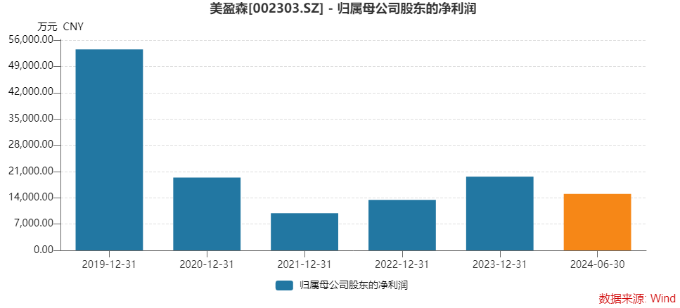 随后两年半,美盈森净利润又以年40%左右的幅度在增长。今年上半年,公司实现营业总收入18.48亿元,同比增长11.06%;实现归母净利润1.50亿元,同比增长47.63%。经历三年修复,公司盈利能力仍未回到峰值。