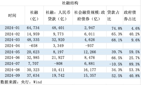 但9月多项金融指标出现好转。人民银行10月14日发布的数据显示,9月人民币贷款新增1.59万亿,同比少增0.72万亿;9月新增社融3.76万亿,同比少增近4000亿。但二者环比大幅改善,同时多项指标出现明显改善,包括M2增速回升、居民贷款边际改善、票据冲量缓解、信贷占社融比重超过政府债券等。